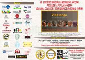 O VIII Encontro Municipal Pró-saúde da população negra – Vida Longa com saúde e sem racismo conta com o apoio da Prefeitura Municipal de Arapongas – através da Secretaria de Saúde e Secretaria de Cultura, Lazer e Eventos, do Sistema Único de Saúde (SUS), Departamento de Gestão do Cuidado Integral (DGI/SAPS/MS), Ministério da Saúde, Coordenação Estadual DST/AIDS, APP Sindicato, Honpar, Rede Mulheres Negras PR, Idafro – Instituto de Defesa dos Direitos das religiões afro-brasileiras, FPRMA, Rede Nacional de Religiões Afro-brasileiras e saúde, Neab XWm UnB, Espaço Humana Mente, Escritório Hércules, Programa de Pós-Graduação em Psicologia, AFALP, Ilé Àse AlayÈ, Lebios/UFPA, Aratintas, Governo Federal, YLÈ AXE. Realização: Ilé Àse Ti Tóbi Ìyá Àfin Òsùn Alákétu, AIABA – Associação Interdisciplinar Afro-Brasileira e Africana e Projeto Oridé – Cultura Africana e Afro-brasileira.