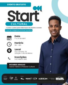 Formação é voltada a artistas, produtores e agentes culturais interessados em acessar editais de fomento. Curso oferece abordagem prática, incluindo uso de inteligência artificial na criação de projetos. As aulas acontecem em abril, na Estação Cultural Milene, com vagas reservadas por ações afirmativas. Iniciativa integra projeto aprovado pela Política Nacional Aldir Blanc no Paraná.