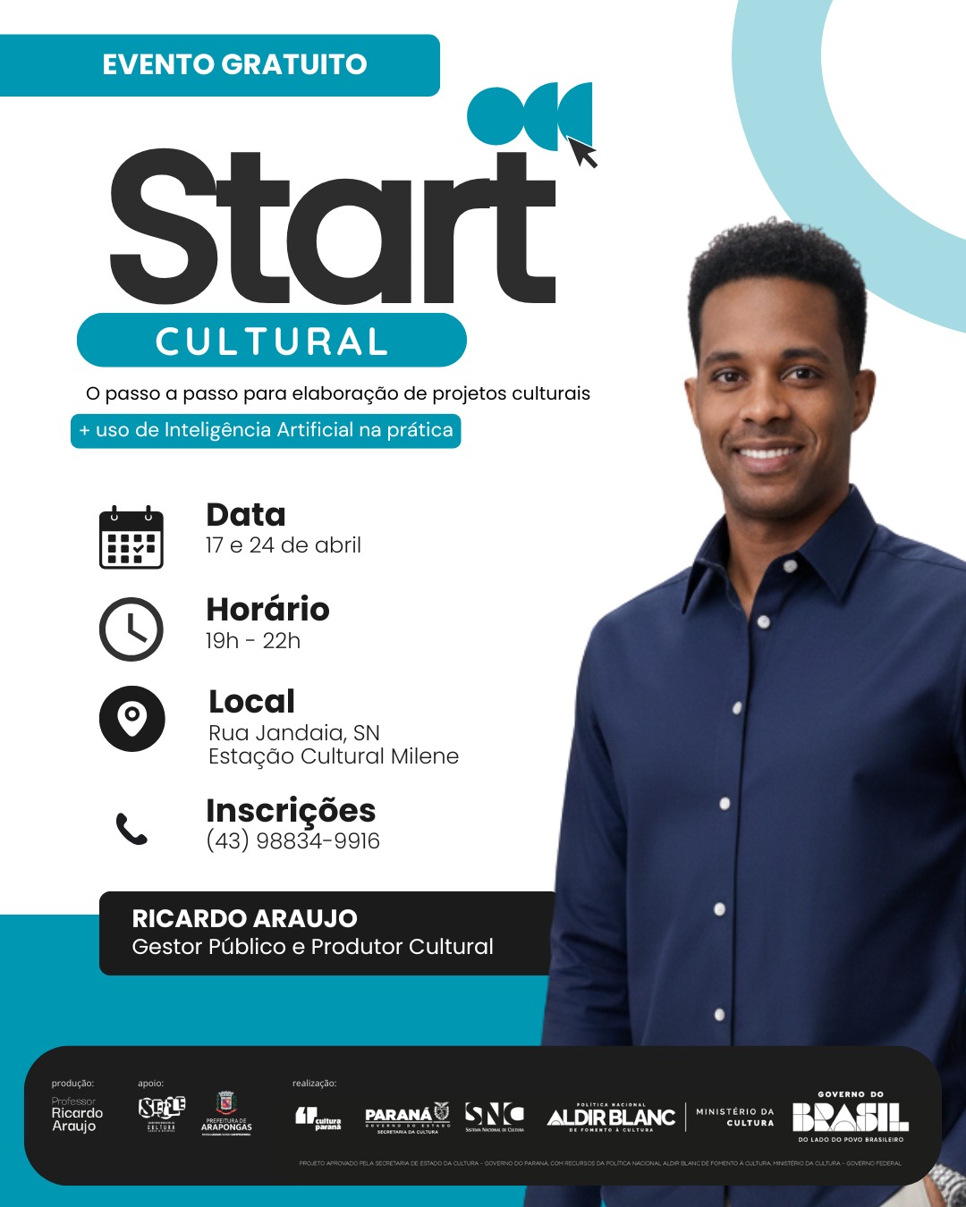 Arapongas abre inscrições para curso gratuito de elaboração de projetos culturais