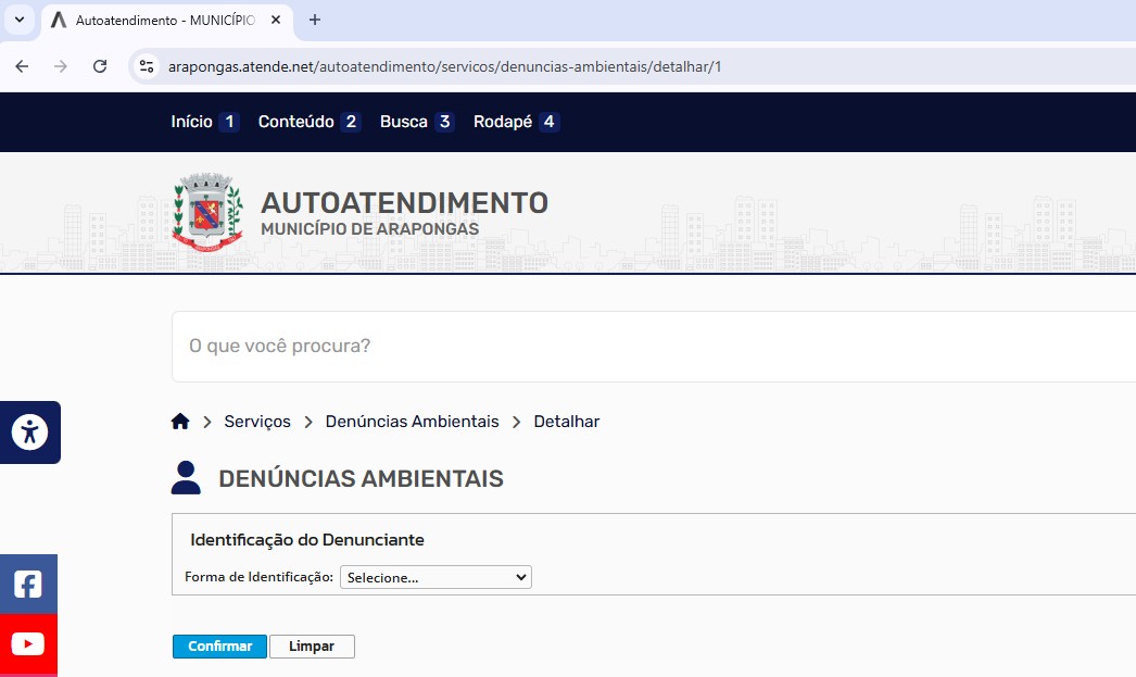 Os moradores interessados em registrar denúncias podem acessar o site oficial por meio do link: https://arapongas.atende.net/autoatendimento/servicos/denuncias-ambientais/detalhar/1. A plataforma oferece a opção de identificação do denunciante ou, se preferir, o envio da denúncia de forma anônima.