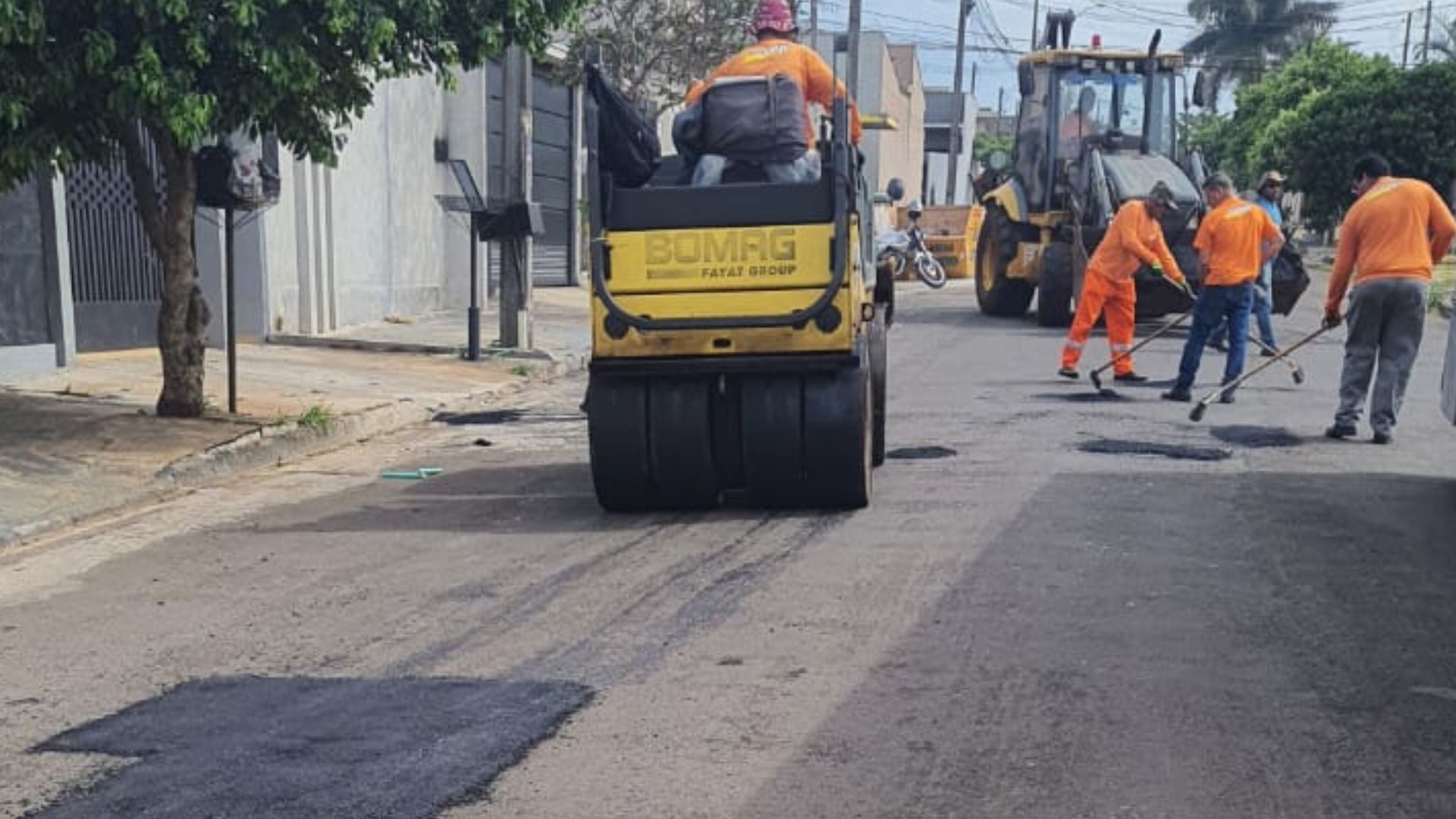 Serviços estão concentrados na Rua Garrincha-do-Mato-Grosso e vias próximas. Companhia orienta motoristas e pedestres a evitarem o local até a secagem completa do material. Ação integra cronograma de manutenção viária da Prefeitura.