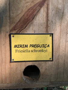 Volpato também detalhou a disposição das colmeias instaladas na área. “Na pista superior, foi colocado uma caixa de mandaçaia, um totem para abelha solitária, em que só se colocam buraquinhos para a abelha fazer o ninho, e uma outra caixa de iraí. Então, eram duas em cima e esse hotel das solitárias. E, na pista de baixo eram três abelhas: jataí, abelha mirim droryana, se não me engano, e uma mirim-preguiça”, explicou.