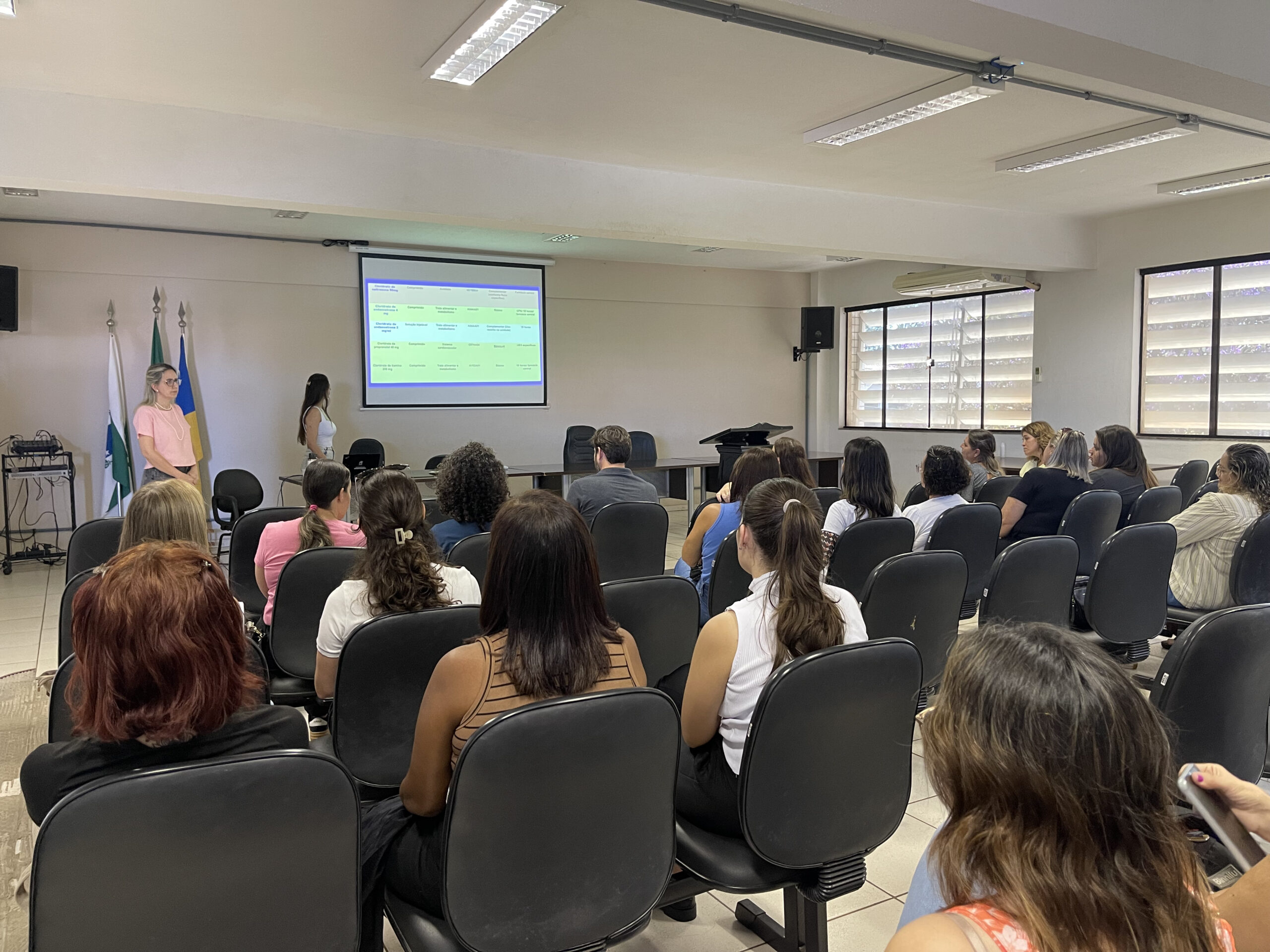A apresentação foi conduzida pelas farmacêuticas Bruna Follador, da Farmácia do setor de Epidemiologia, e Alissana Camargo Bassoli, da Unidade de Pronto Atendimento (UPA) de Arapongas e presidente da Comissão Permanente de Farmácia e Terapêutica.