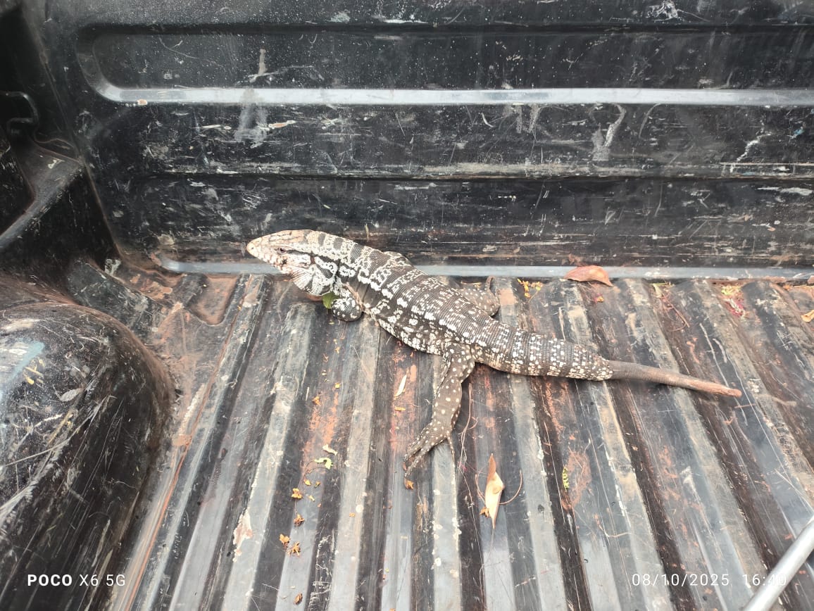 Equipes do Grupamento de Defesa Ambiental (GDA) realizaram a captura de dois lagartos encontrados em casas da região urbana do município. Após avaliação técnica, os animais foram devolvidos ao seu habitat natural. A Prefeitura reforça orientações à população sobre como proceder em casos semelhantes.