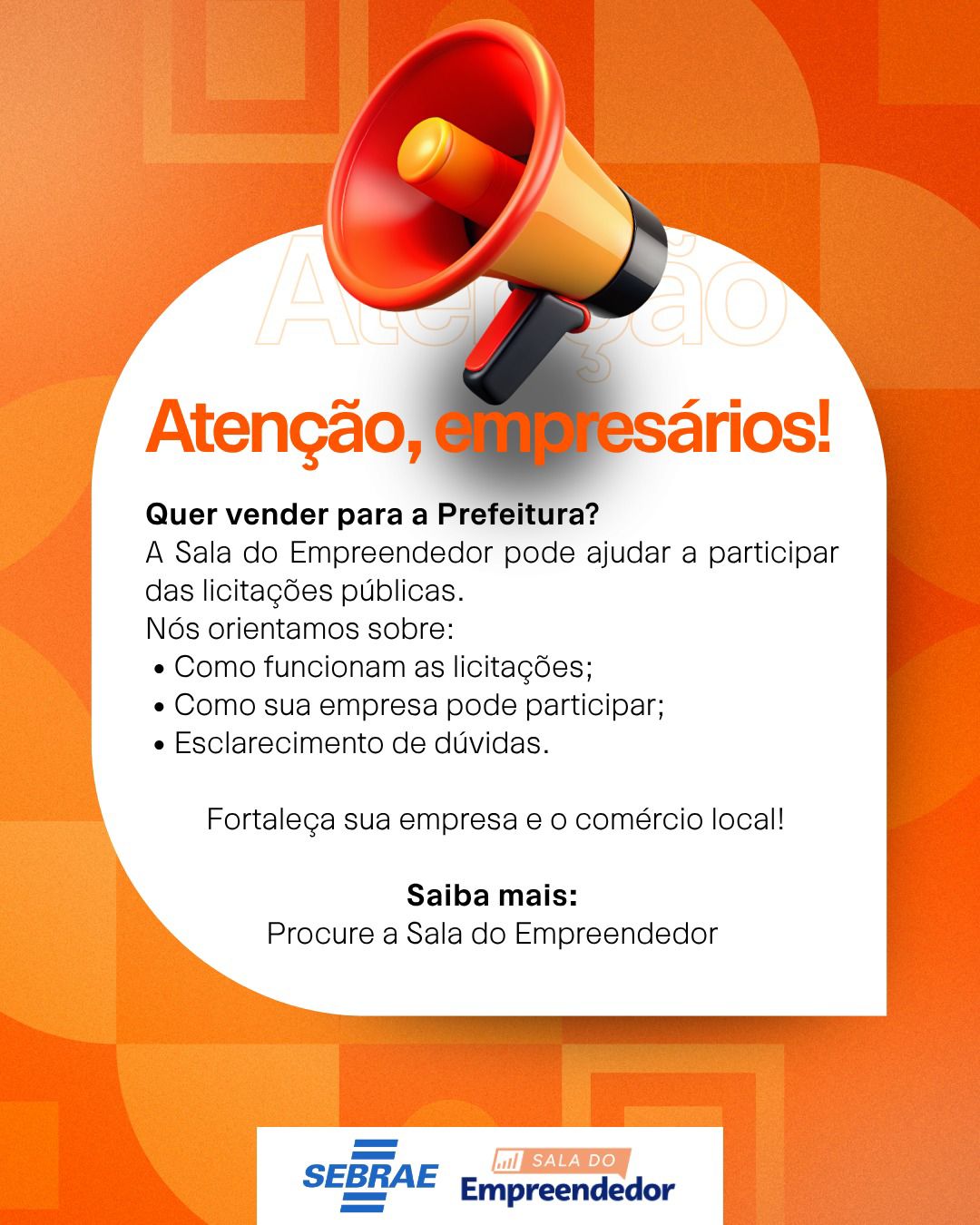 A Sala do Empreendedor oferece atendimento especializado para esclarecer dúvidas, orientar sobre a documentação necessária e explicar as etapas dos processos licitatórios. O suporte busca facilitar o acesso dos MEIs a esse tipo de oportunidade, muitas vezes visto como complexo por pequenos empresários.