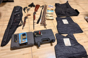 Os policiais encontraram uma pistola calibre .38 TPC, um revólver calibre .22, duas garruchas, uma carabina calibre .22 e uma carabina artesanal na casa de um investigado por violência doméstica. Também foram localizados um colete balístico, carregadores e diversas munições de calibres variados (9mm, .38 TPC, .22 e .32).