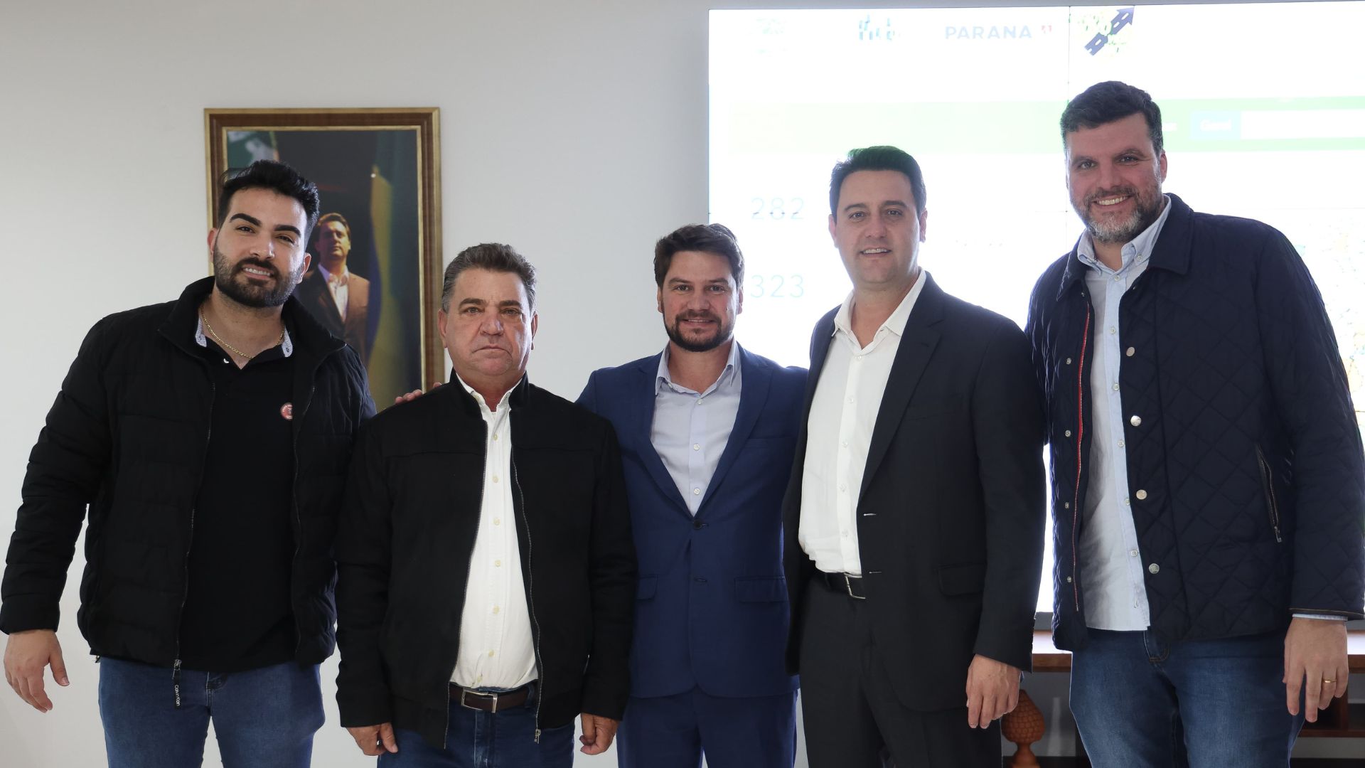 O prefeito de Arapongas, Rafael Cita, participou nesta segunda-feira (19) de uma reunião com o governador do Paraná, Ratinho Júnior, para tratar de demandas consideradas prioritárias para o município. Acompanhado pelo deputado federal Pedro Lupion, pelo superintendente de Apoio aos Municípios, Sérgio Onofre, e pelo secretário municipal de Administração, Gabriel Esper, o prefeito apresentou três frentes principais: o contorno viário, a pavimentação da estrada do Araguari e a infraestrutura do Parque Industrial Marcos Pennacchi.