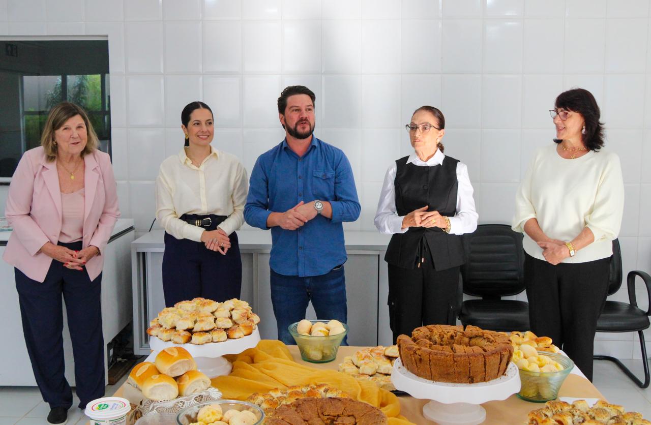 Em um café da manhã realizado na manhã desta segunda-feira (26), o prefeito de Arapongas, Rafael Cita, e a vice-prefeita Édina Kümmel participaram de um encontro com os servidores do Centro de Referência Nutricional de Arapongas (Cerena), ligado à Secretaria Municipal de Segurança Alimentar e Nutricional (SESAN). O evento reuniu também agricultores familiares que fornecem alimentos para a Prefeitura, além da primeira-dama, Gabriela Cita, e dos secretários de Governo, Lucia Golon, e de Educação, Lino Batista de Oliveira.