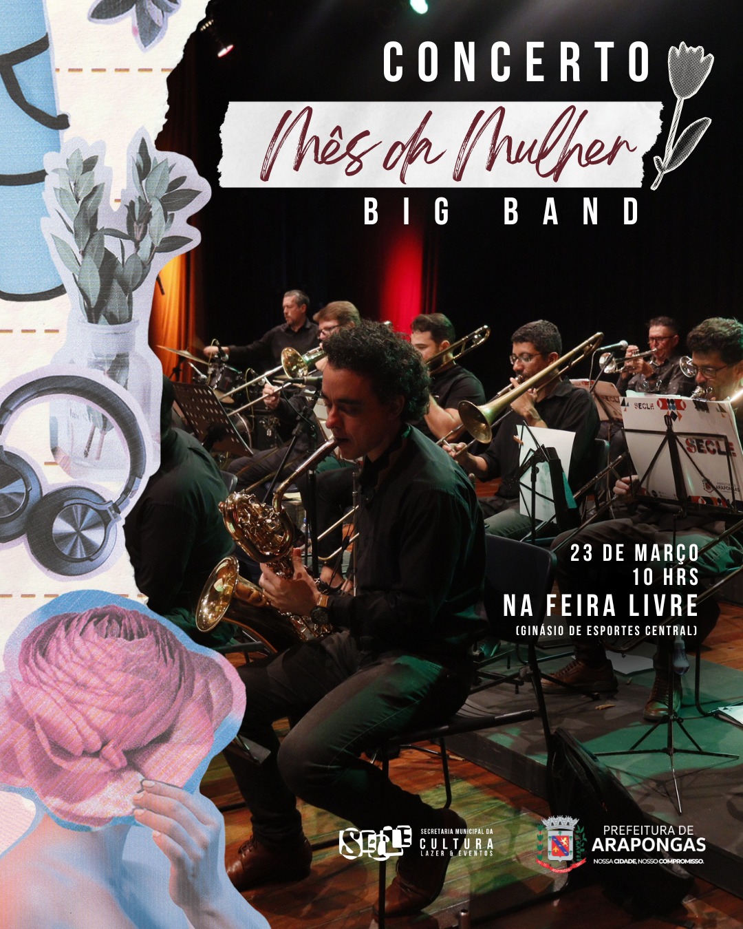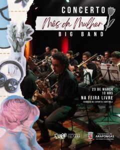 A Prefeitura de Arapongas, por meio da Secretaria Municipal de Cultura, Lazer e Eventos (Secle), realiza no próximo domingo (23), durante a Feira de Livre, o Concerto para Elas – A Big Band na Cidade dos Pássaros. Segundo a Secle, será um espetáculo a céu aberto, com um palco especial, onde cada nota é um tributo à força, à beleza e à liberdade das mulheres. Como pássaros que riscam o céu com sua dança, as melodias atravessarão o mercado, envolvendo a cidade em harmonia e celebração. “Venha sentir a música bater asas em seu peito. Traga sua voz, seu riso, seu aplauso. Neste dia, a cidade canta para elas”, diz o secretário da pasta, Pedro Ziroldo.