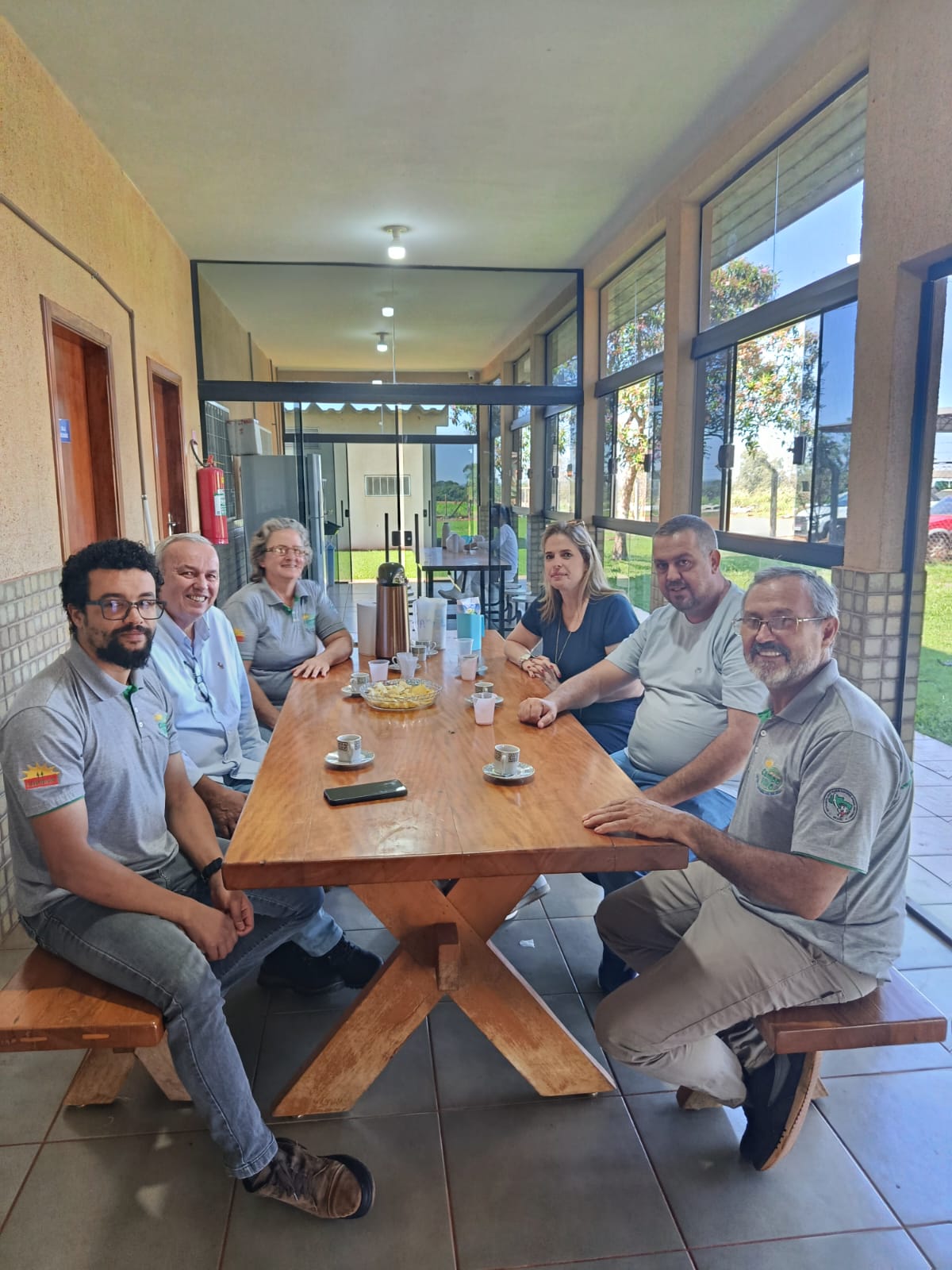Ao final da visita, os participantes foram recepcionados com um café servido com queijos e iogurtes produzidos pela própria cooperativa, evidenciando parte da produção local acompanhada durante a agenda.