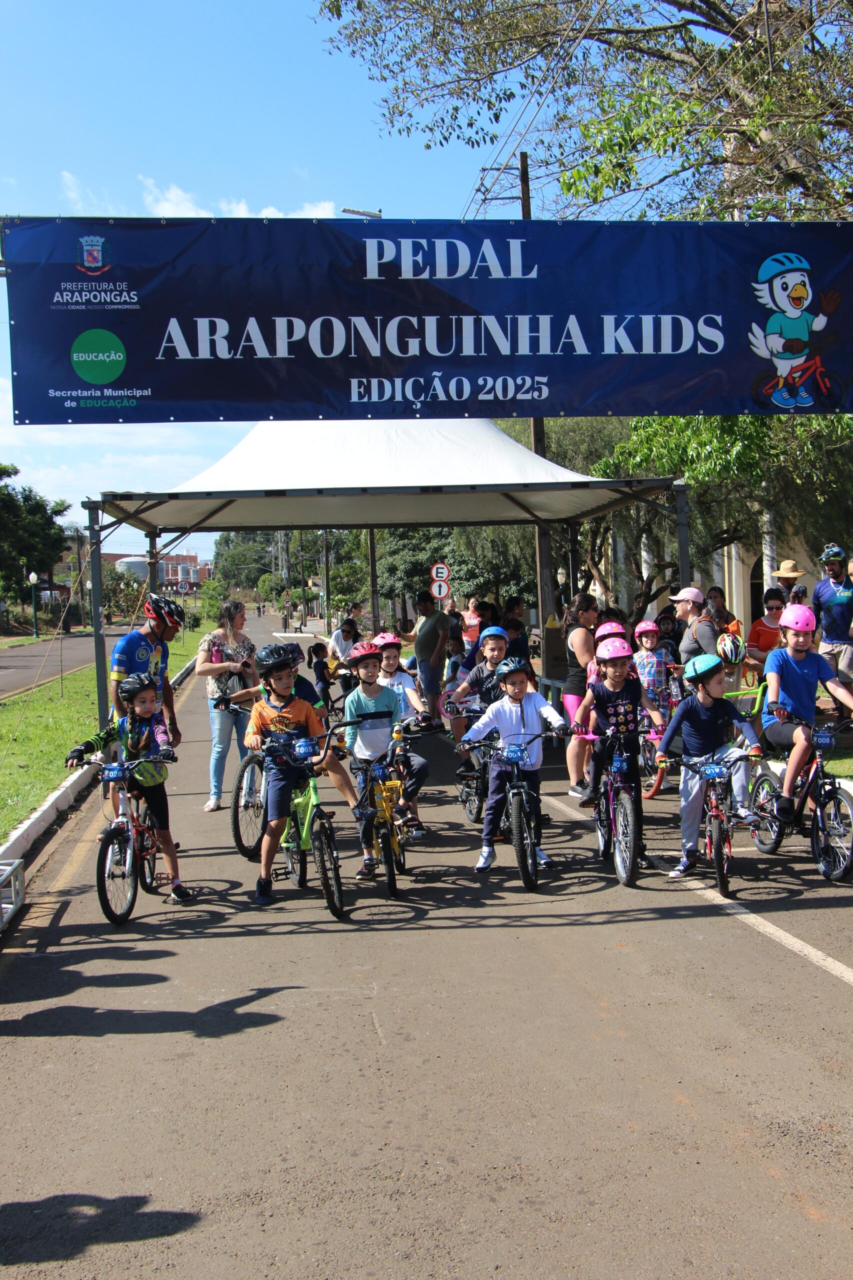 A 1ª edição do Pedal Araponguinha Kids reuniu 115 crianças inscritas na manhã de sábado, 06, no Distrito de Aricanduva, em Arapongas. A Prefeitura de Arapongas, junto às Secretarias de Educação e Esporte, apoiou a realização do evento. O secretário de Educação, Lino Batista de Oliveira, representou o prefeito Rafael Cita durante a programação.