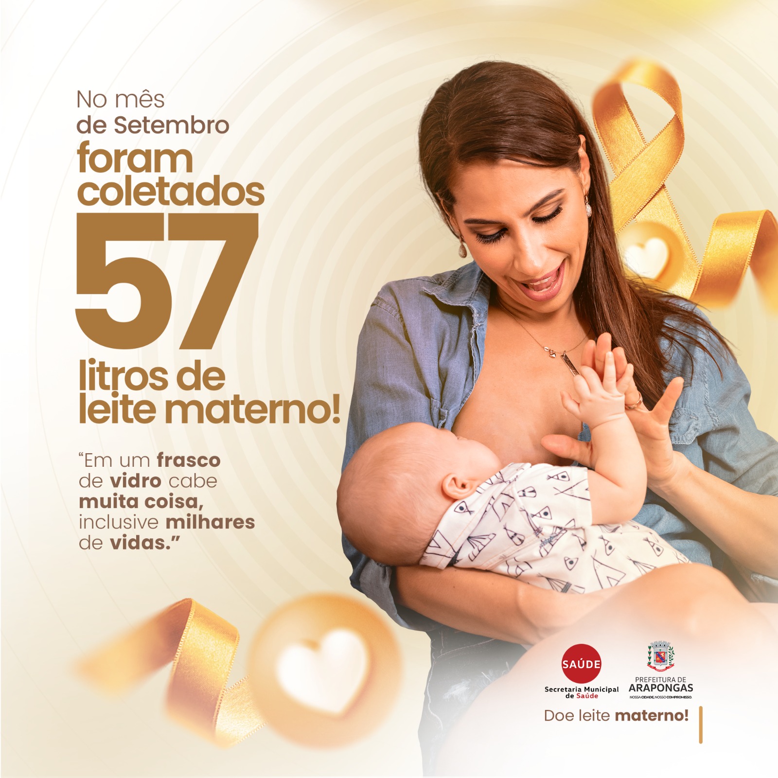 Com 57 litros arrecadados, mês teve a maior quantidade de leite humano doado no ano. Todo o material coletado é destinado a bebês internados na UTI Neonatal do Hospital da Providência, em Apucarana. Ao todo, mais de 269 litros já foram doados por mães araponguenses em 2025.