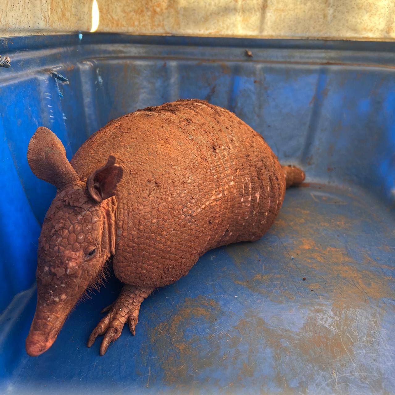 Tatu é resgatado com segurança no Jardim Petrópolis, em Arapongas