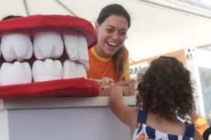 SAÚDE INTEGRAL – A área da saúde marca presença no Verão Maior Paraná 2026 com projetos da Universidade Estadual do Norte do Paraná (UENP). Um deles é dedicado à saúde bucal com ações educativas e preventivas por meio de dinâmicas que ensinam sobre higiene oral e incentivam hábitos saudáveis para fortalecer a autoestima e a qualidade de vida dos veranistas. O intuito é demonstrar, de forma prática e acessível, como os cuidados com o sorriso impactam o bem-estar da sociedade.
