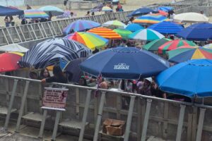 A movimentação começou logo após o fim do show de Fernandinho, na noite desta quinta-feira (29), e não parou mais. Teve gente que passou a madrugada no local, improvisou guarda-sol, levou comida, água, e fez novas amizades para garantir segurança e um bom lugar para assistir à apresentação da boiadeira.